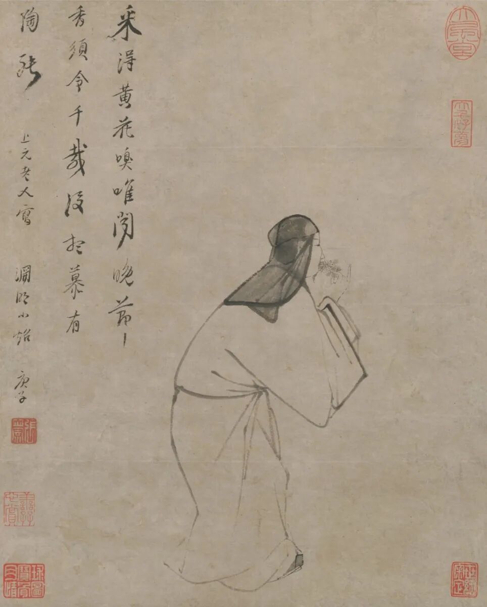清,《渊明嗅菊轴》。来源/故宫博物院