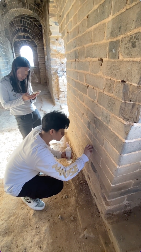 10月3日,有网友爆料,北京司马台长城,疑似有游客在5号烽火楼墙体上刻字,刻字者为一对年轻情侣。拍摄者对二人出言提醒,二人没有理会。